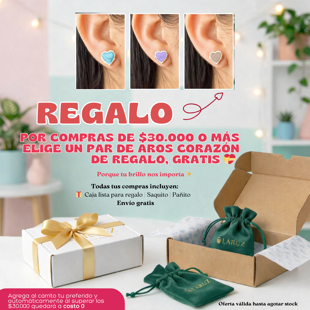 Por compras desde $30.000, elige un par de aros corazón de regalo 💖 + envío gratis
