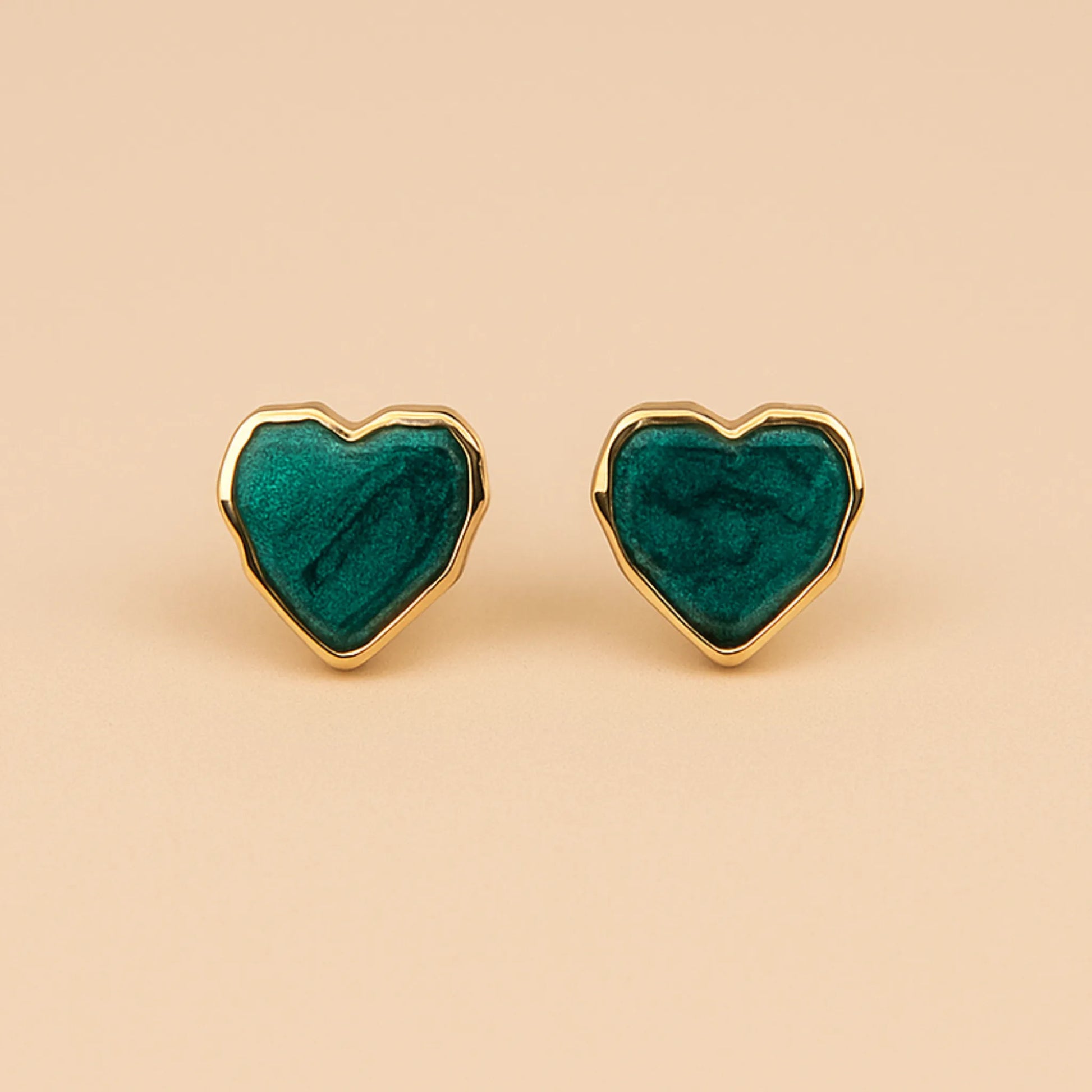 Los Aros Corazón Verde destacan por su diseño encantador y moderno. Con una base dorada y un centro verde brillante, aportan un toque de color único a cualquier look.
